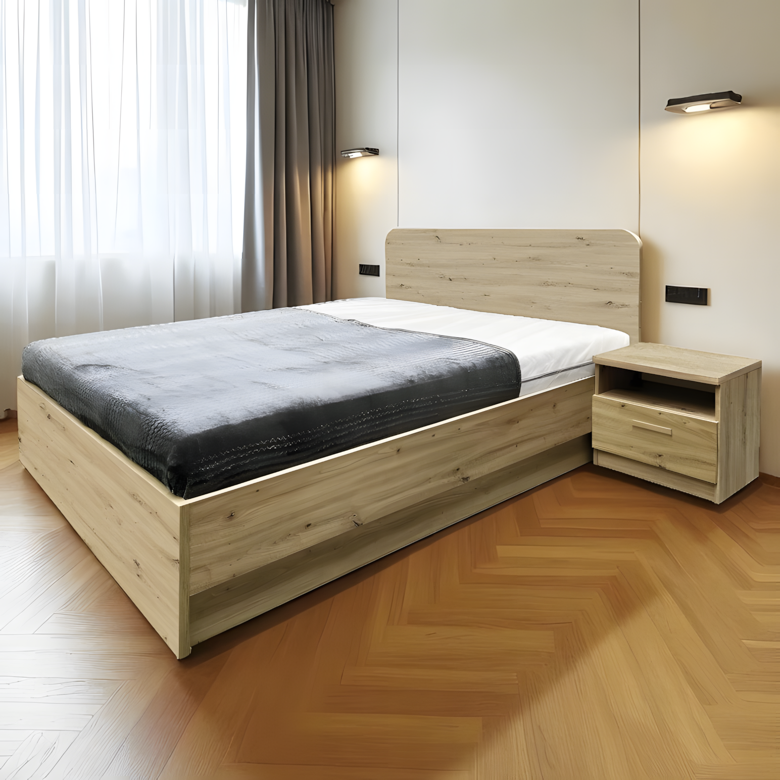 - 1,65 / 2,05 m (dimensiuni exterioare cu noptiere)