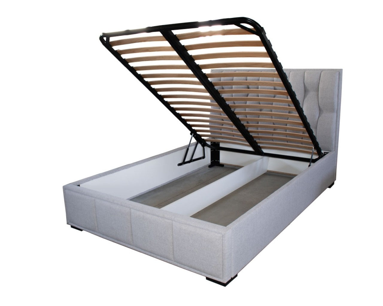 📐 Somieră metalică rabatabilă, care transformă tot interiorul patului într-o ladă spațioasă cu acces foarte facil.